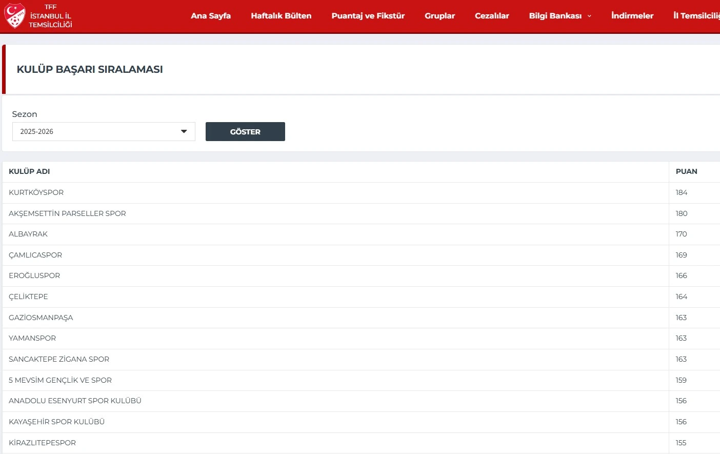 KULÜBÜMÜZ 2025-2026 YILI KULÜP BAŞARI SIRALAMASINDA İLK SIRADA YER ALMAKTADIR..